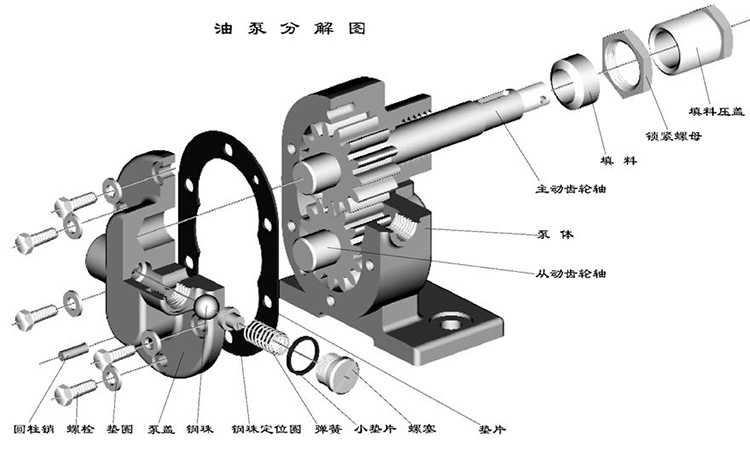 此系列齒輪泵主要有齒輪、軸、泵體、泵蓋、軸承套、軸端密封等組成。齒輪經氮化處理有較高的硬度和耐磨性。與軸一同安裝在可更換的軸套內運轉。泵內全部零件的潤滑均在泵工作時利用輸送介質而自動達到。