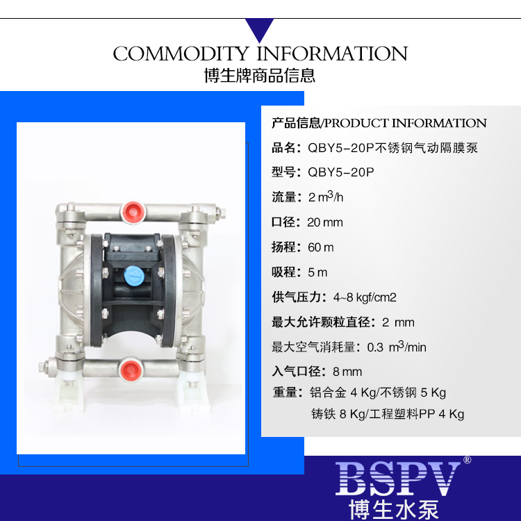 QBY5-20P型不銹鋼氣動(dòng)隔膜泵