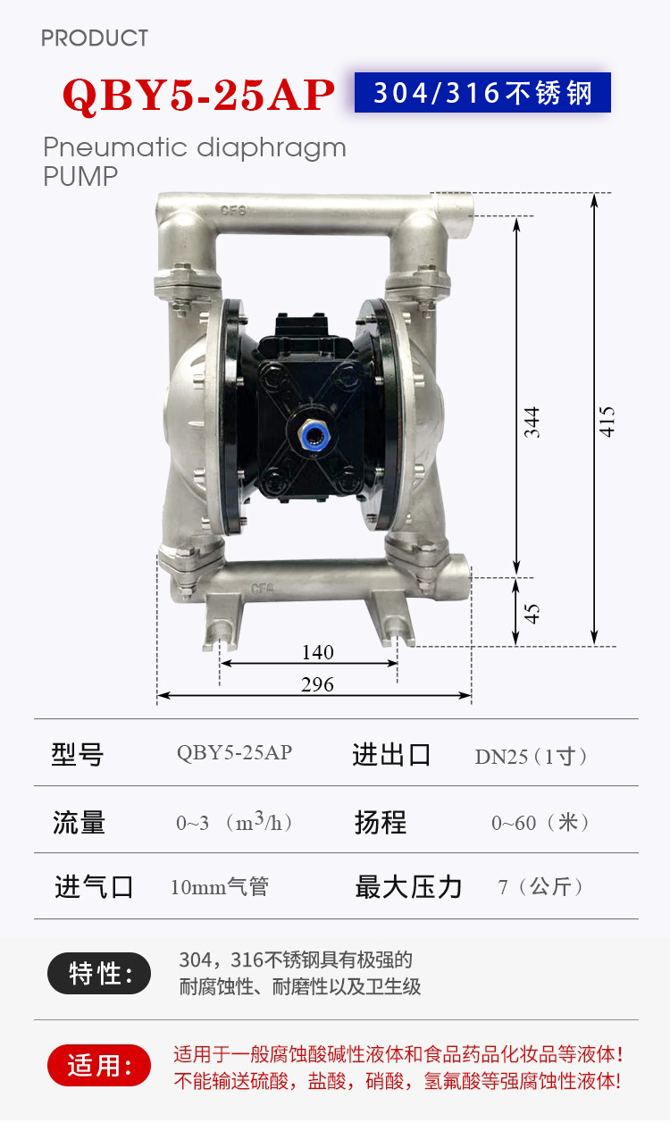 QBY5-25AP螺紋接口不銹鋼隔膜泵