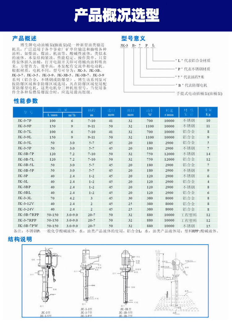 JK-3-7L型鋁合金電動油桶泵